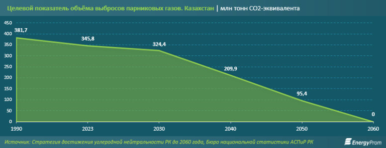 Казахстан в сравнении с другими странами ЦА выдвинул минимальную цель: снижение к 2030 году уровня выбросов всего на 15% в сравнении с далёким 1990-м. Кроме того, у РК оказался самый отдалённый по времени срок перехода к полной углеродной нейтральности. Если другие страны ЦА готовы подойти к этому важному достижению к 2050 году, то Казахстан — только к 2060-му. Отчасти это связано с тем, что в РК больше доля угольной генерации электроэнергии. К тому же уголь остаётся для Казахстана коммодитиз — товаром, экспортируемым в несколько стран.